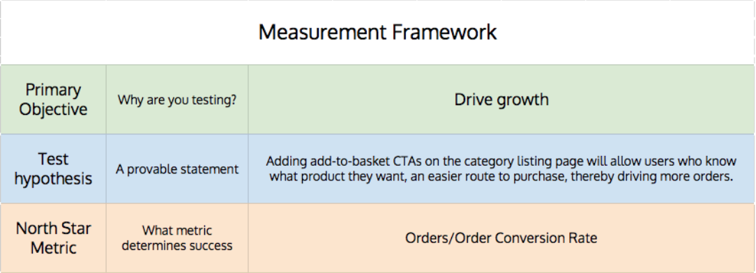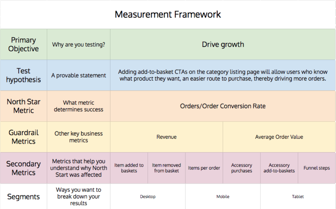 • A framework to structure your goals, so you know what’s relevant for each test
