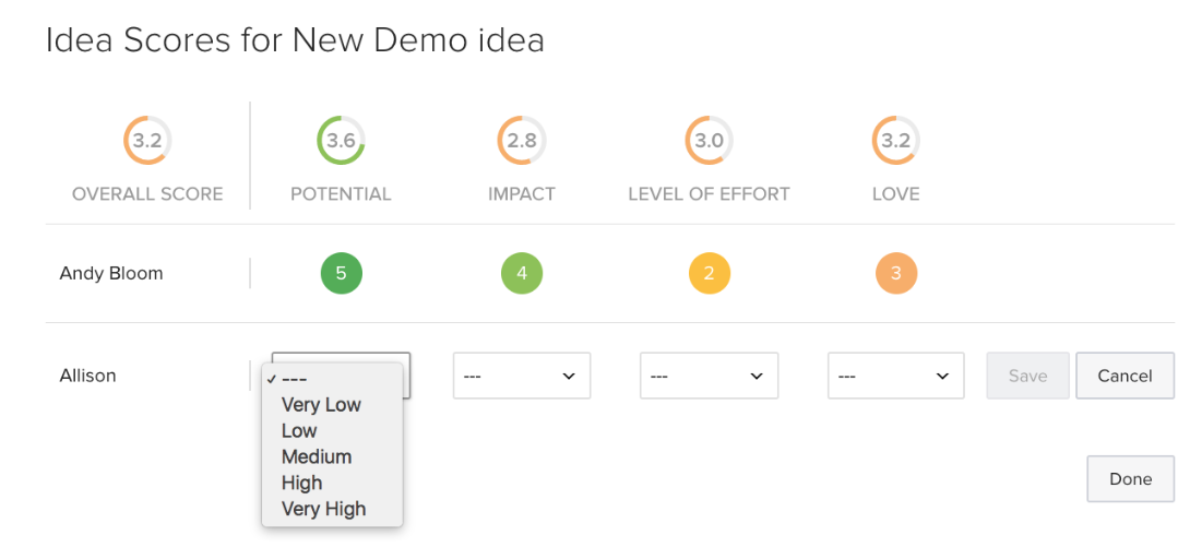 2. Idea Scores from Optimizely