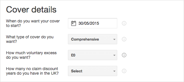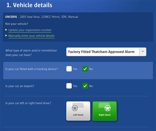 Users are put off at first sight of a long and complicated question set. It’s no coincidence then why moneysupermarket.com, confused.com and comparethemarket.com ask users registration numbers before starting a quote. By presenting a basic question to start a quote, users are not immediately put off, whilst the initial investment (no matter how small) increases the likelihood that they’ll complete the rest of the form. This is because of the sunk cost bias – once a user has already committed to and spent time on a part of your form, they are motivated to see the task through to completion to avoid the initial effort going to waste.