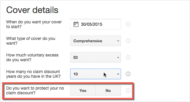 Google Compare hides the protected no claims discount question until the user tells them that they have no claims discount.