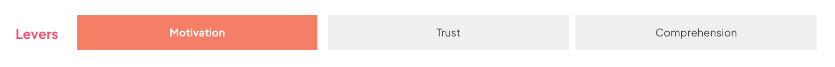 Together the barriers and motivations give us a set of potential levers that we can “pull” in an experiment to try and influence behavior.