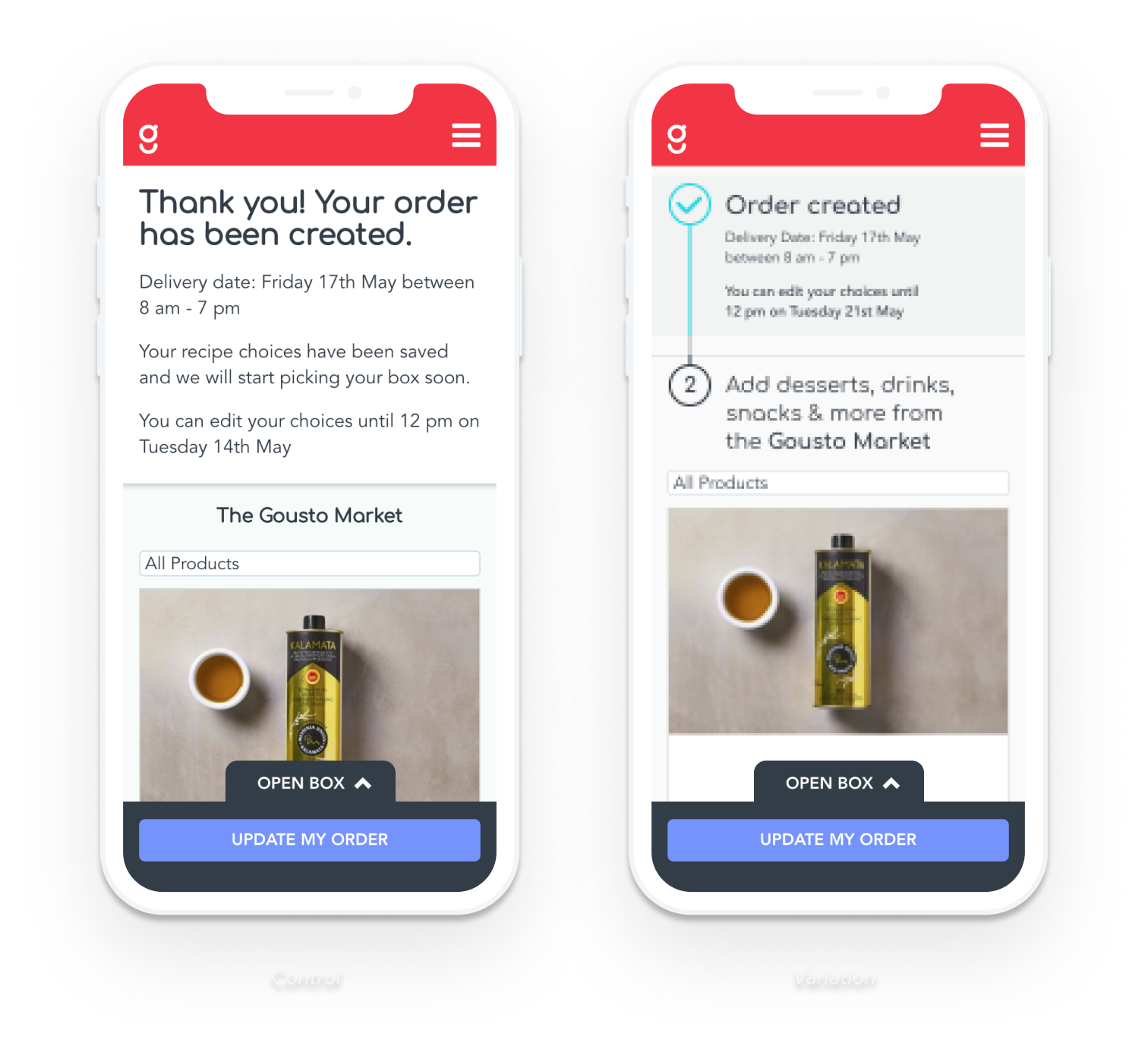 By re-positioning the Gousto Market as a step in the order process and optimizing the messaging and page layout to increase its prominence, we believed it would increase exposure and therefore, purchases of ancillary products.
