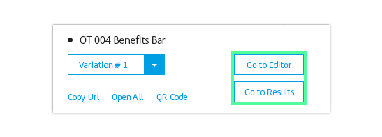 • Jump straight into the Results and Editor pages of any experiment. Just make sure you’re logged into your Optimizely account!