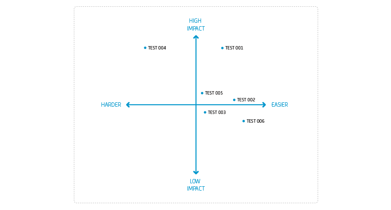 At Conversion.com, we assess all tests for Impact and Ease and plot them on a graph: