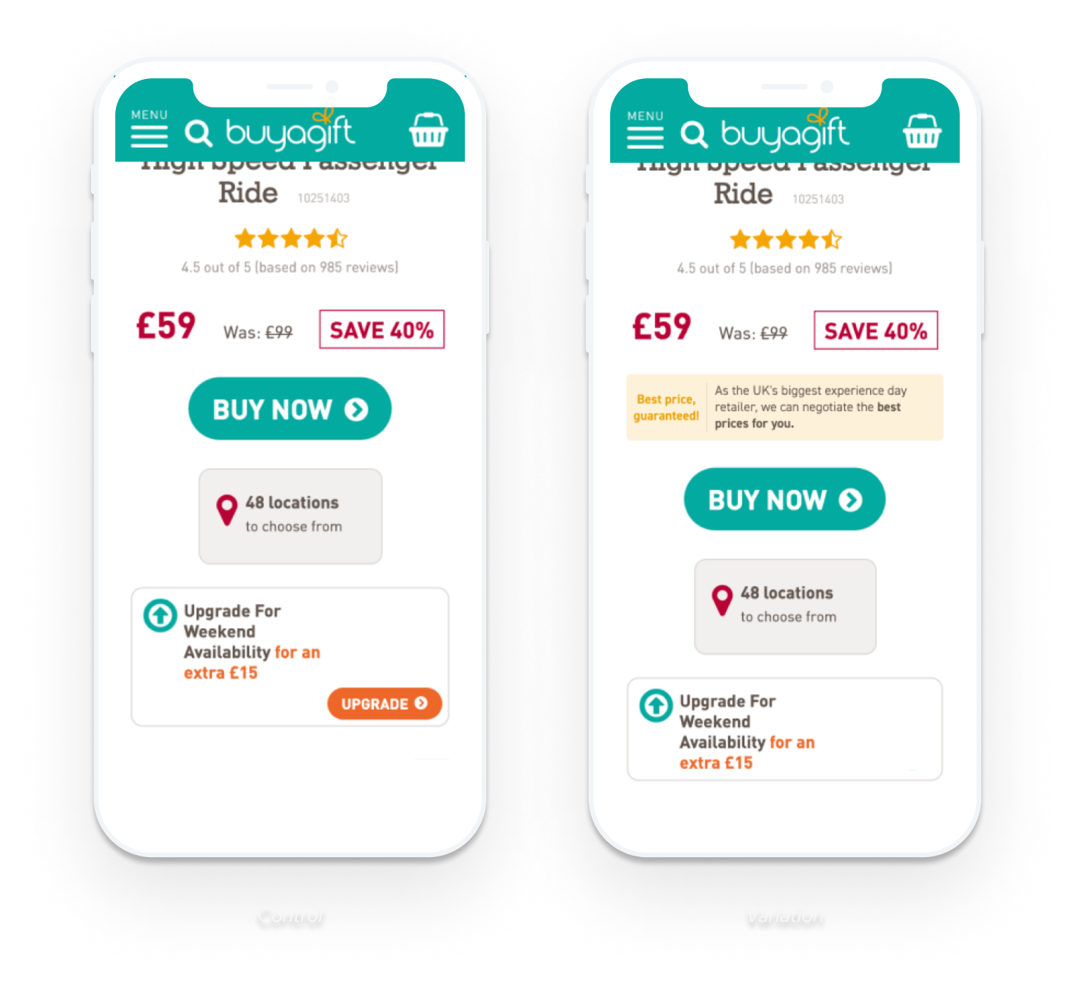 We knew that if we could persuade them to make an impulse purchase, without wanting to leave the site in search of better deals, we could generate a big uplift in Buyagift’s conversion rate.