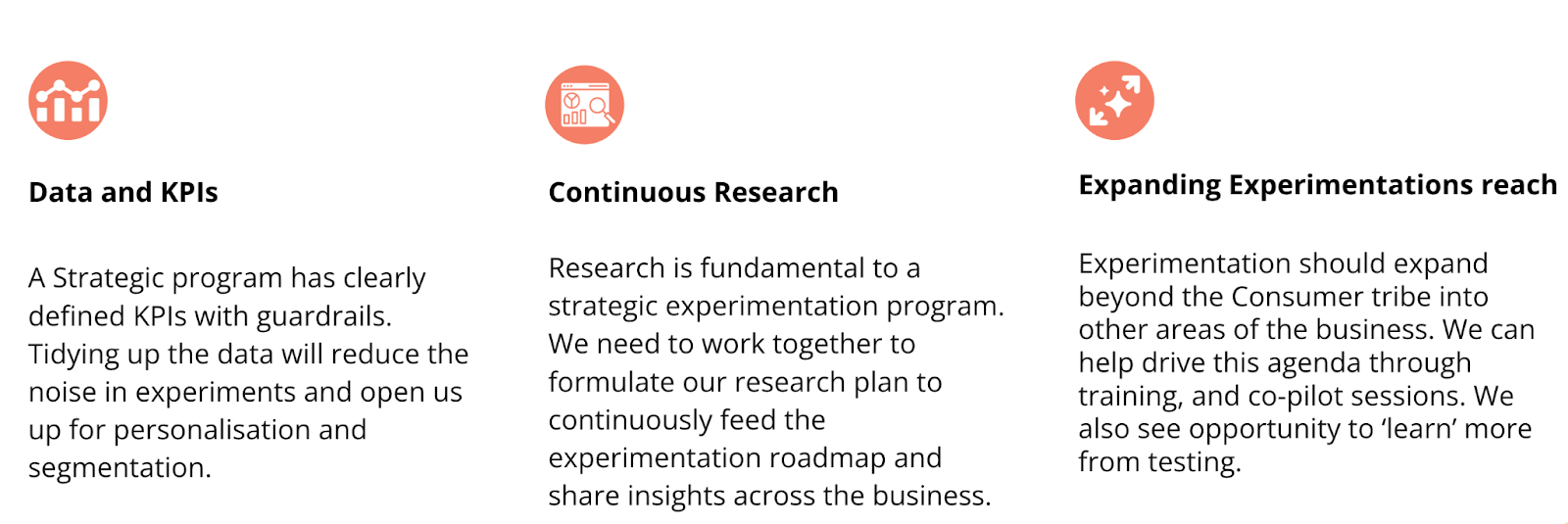 1. The client was using experimentation to drive real business value, but this value was siloed to a couple of teams and had produced zero impact in other areas of the business. The most mature experimentation teams we work with use experimentation to make better decisions across every area of their business.