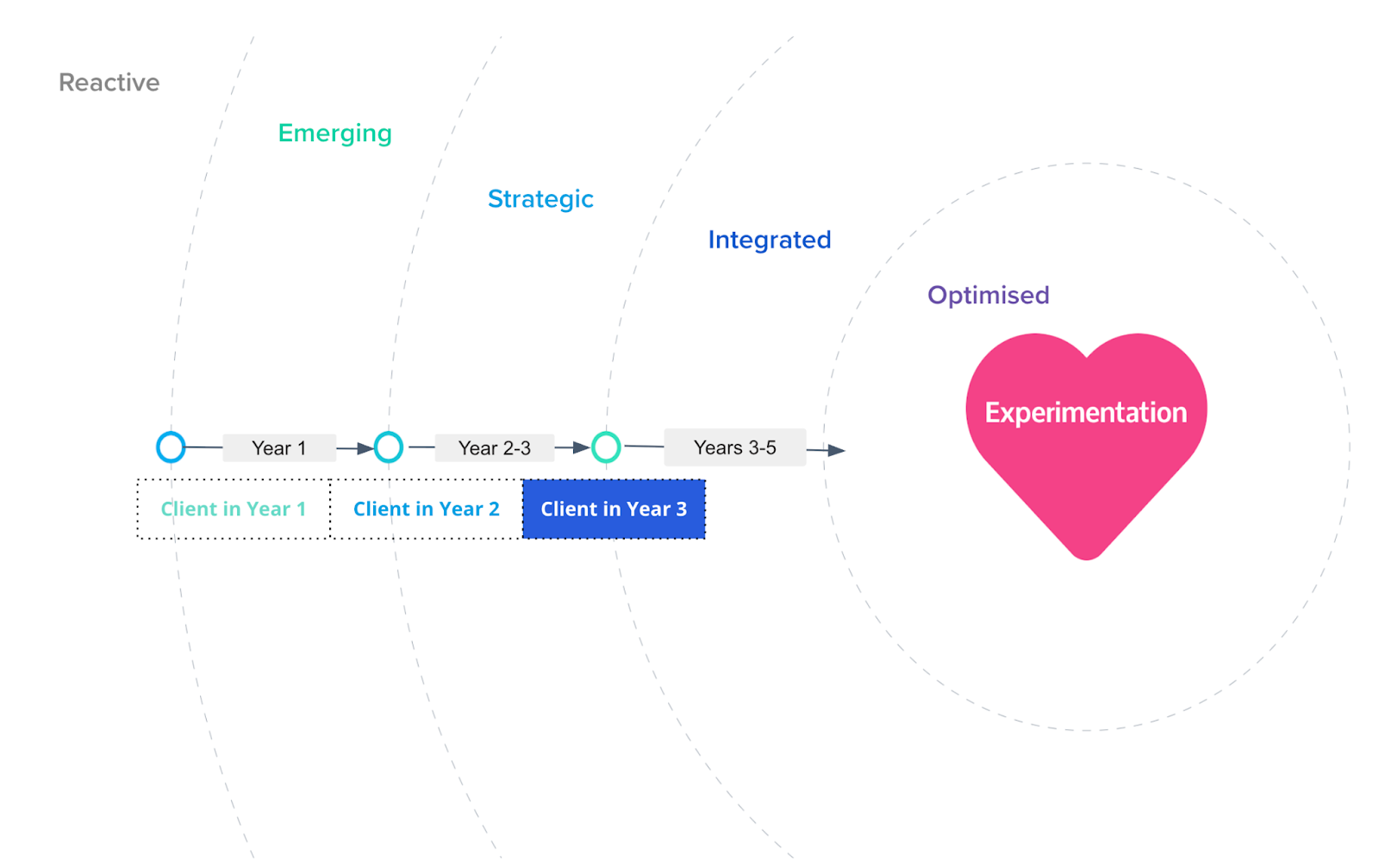 We’ve approached  this problem from many different angles. We’ve developed a number of models and frameworks to support us in this work, and we’ve tailored – and implemented – maturation plans for a huge range of clients: for some of the most mature experimentation organizations on the planet, as well as complete newbies.