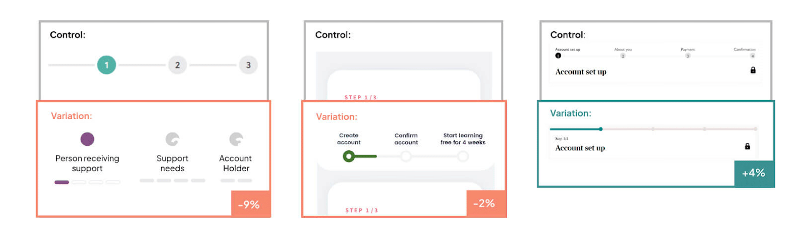 We were able to use this insight to build a new, low-detail progress bar for the test – and the experiment ultimately resulted in a 7.5% increase in signups.