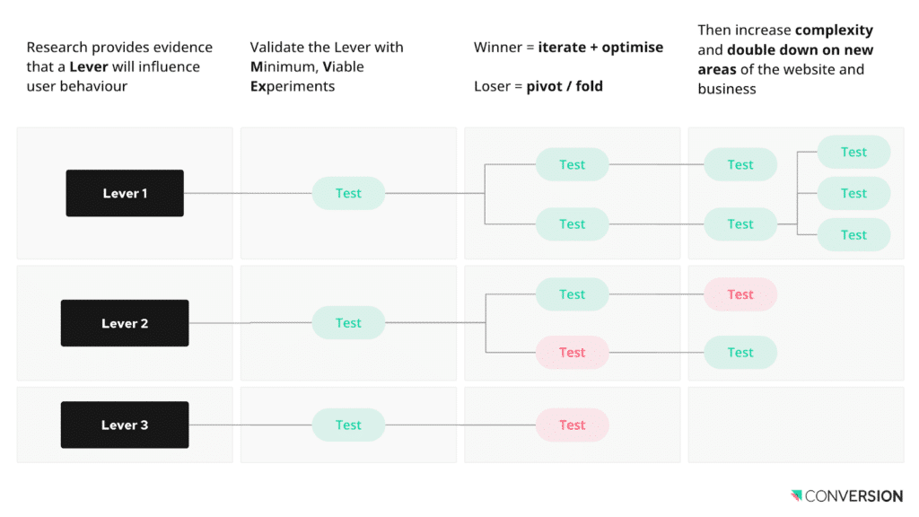 With this analysis in hand, we were then able to build out our client’s experiment roadmap, focussing the majority of our tests on the levers and areas of the website that our analysis revealed to be particularly promising.
