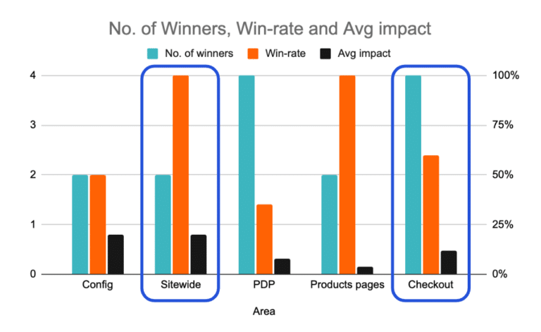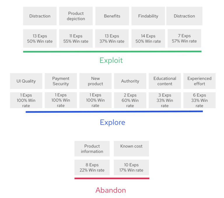 But with our database, we’re able to take insights from past experiment programs and apply them directly to our new clients’ programs. For example: